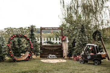 We are switching things up this year! Instead of a Hot Cocoa Booth, we will have a Mistletoe Tester Booth! Christmas Trees, Wreath seat, plus the tractor and little black truck!
