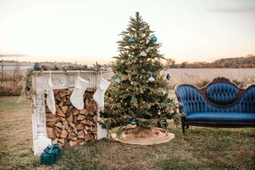 This set includes our signature blue couch that we love so much. Come cozy up by the fireplace and tree for sweet family photos!